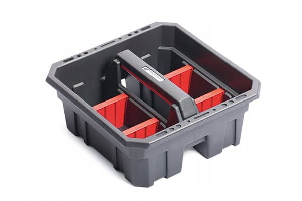Niebywale praktyczny i przydatny oraz średnich rozmiarów pojemnik na narzędzia. Ułatwia wygodne i bezproblemowe uporządkowanie różnego rodzaju akcesoriów i narzędzi. Posiada mocną i wygodną rączkę, która ułatwia przenoszenie. Pojemnik jest niezwykle użyteczny profesjonalistom, ale także majsterkowiczom w przydomowych pracach. Pozwala za jednym razem z łatwością przenieść narzędzia, dzięki temu możesz zaoszczędzić czas i podnieść komfort pracy. Na brzegach nosidła znajdują się otwory, które mogą posłużyć do przechowywania wkrętaków. Produkt prezentuje się bardzo elegancko i jest najwyższej jakości - wykonany z mocnych materiałów, co zapewnia jego trwałość i wytrzymałość.