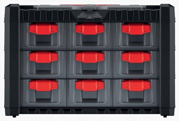 Praktyczny stojący organizer z wysuwanymi szufladkami to praktyczne rozwiązanie dla ludzi ceniących ład i porządek w garażu, warsztacie oraz piwnicy majsterkowicza. Nic nie jest takim marnotrawieniem czasu jak szukanie kołków rozporowych, wkrętów do drewna i metalu lub śrub, nakrętek i podkładek. Organizer daje możliwość posegregowania i utrzymania w porządku wymienionych rzeczy co pozwala zaoszczędzić czas a co za tym idzie pieniądze. Dzięki otworom umieszczonym w tylnej części obudowy organizer można zawiesić na ścianie, z kolei solidna rączka umożliwia jego wygodne przenoszenie. Nie dość, że ładny to jeszcze trwały i solidnie wykonany przez polskiego producenta.