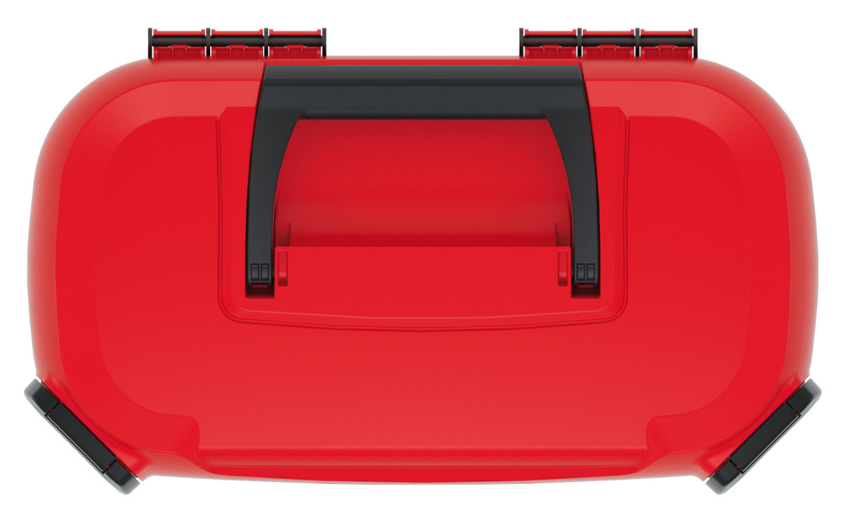 Skrzynka narzędziowa Kistenberg to bardzo wygodne i wytrzymałe nosidło do narzędzi. Uchwyt jest chowany do środka dzięki czemu na pojemniku można coś postawić.